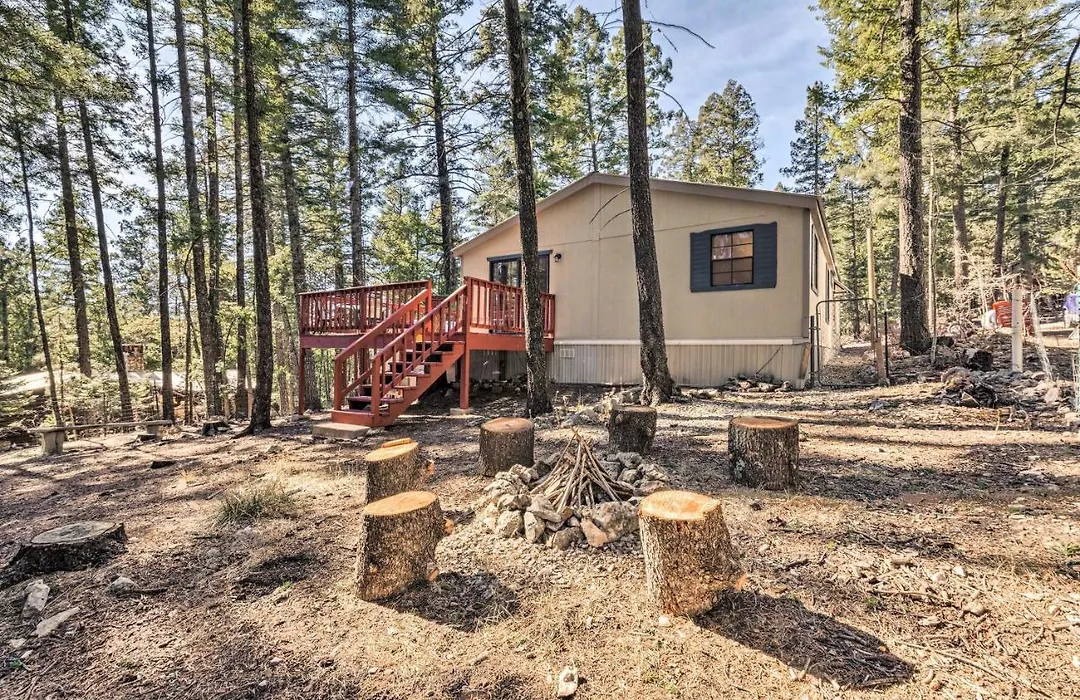 Relaxing Lincoln Forest Retreat With Wraparound Deck Vila está localizada a uma distância de aproximadamente 10 minutos a pé de New Mexico Rails-to-Trails, dando acesso a vários pontos turísticos próximos. Os hóspedes podem desfrutar de esqui na neve e caminhada nesta propriedade, localizada muito perto de Trestle Recreation Area.